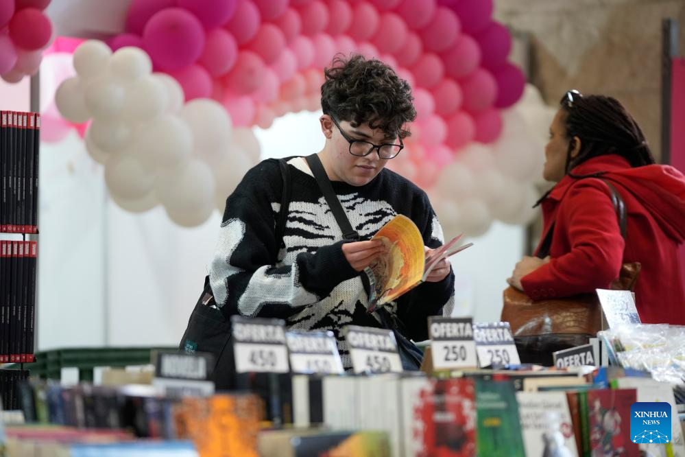 MONTEVIDEO, 3 octubre, 2024 (Xinhua) -- Un joven observa un libro en un estand durante la 46ª Feria Internacional del Libro de Montevideo, en Montevideo, capital de Uruguay, el 3 de octubre de 2024. (Xinhua/Nicolás Celaya)