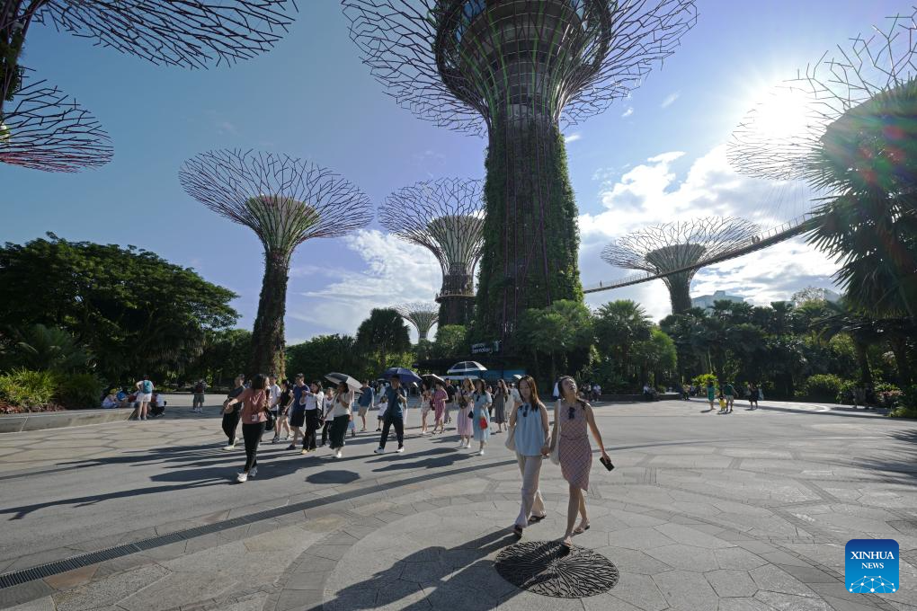 SINGAPUR, 3 octubre, 2024 (Xinhua) -- Turistas visitan la Arboleda de Superárboles, en los Jardines de la Bahía de Singapur, el 3 de octubre de 2024. (Xinhua/Then Chih Wey)