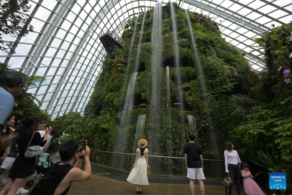 SINGAPUR, 3 octubre, 2024 (Xinhua) -- Turistas posan para fotografías dentro del Bosque Nuboso, en los Jardines de la Bahía de Singapur, el 3 de octubre de 2024. (Xinhua/Then Chih Wey)