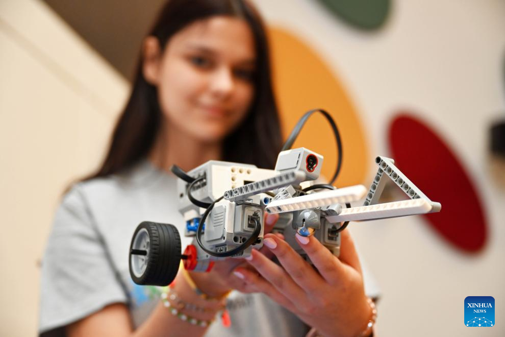 AHMADI, 3 octubre, 2024 (Xinhua) -- Imagen del 2 de octubre de 2024 de una joven mostrando su robot durante las rondas clasificatorias para la Olimpiada Mundial de Robótica (WRO, por sus siglas en inglés), en la Gobernación de Ahmadi, Kuwait. Kuwait celebró sus rondas clasificatorias para la WRO 2024 en la Gobernación de Ahmadi el miércoles, con la participación de 24 equipos locales para el grupo de edad de 8 a 19 años. Los ganadores representarán a Kuwait en las finales de la WRO 2024 que se celebrarán en Turquía en noviembre. (Xinhua/Asad)