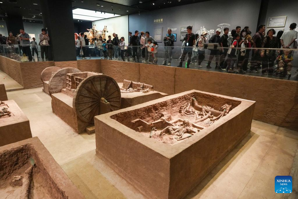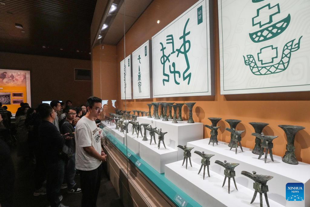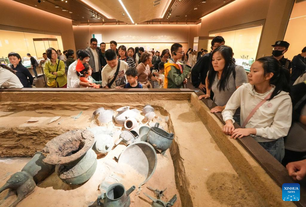 BEIJING, 5 octubre, 2024 (Xinhua) -- Imagen del 1 de octubre de 2024 de turistas visitando el Museo de Yinxu, en Anyang, en la provincia de Henan, en el centro de China. Durante la semana de vacaciones con motivo del Día Nacional que comenza el 1 de octubre, muchos chinos realizan recorridos culturales para conocer y apreciar la cultura tradicional china. (Xinhua/Chen Yehua)