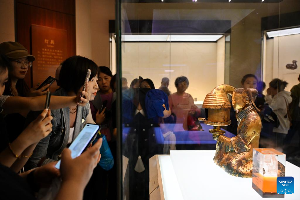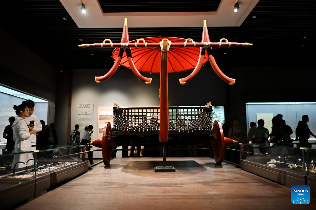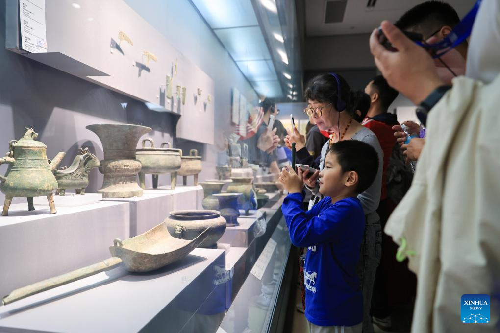 BEIJING, 5 octubre, 2024 (Xinhua) -- Turistas visitan el Museo de Handan, en Handan, en la provincia de Hebei, en el norte de China, el 5 de octubre de 2024. Durante la semana de vacaciones con motivo del Día Nacional que comenza el 1 de octubre, muchos chinos realizan recorridos culturales para conocer y apreciar la cultura tradicional china. (Xinhua/Li Xin)