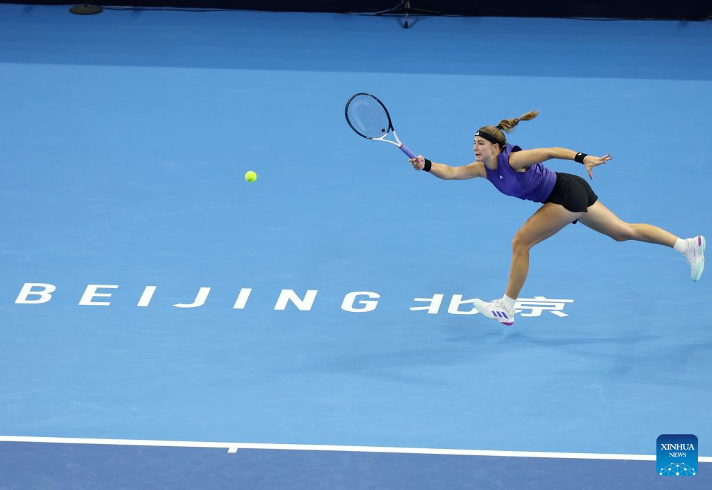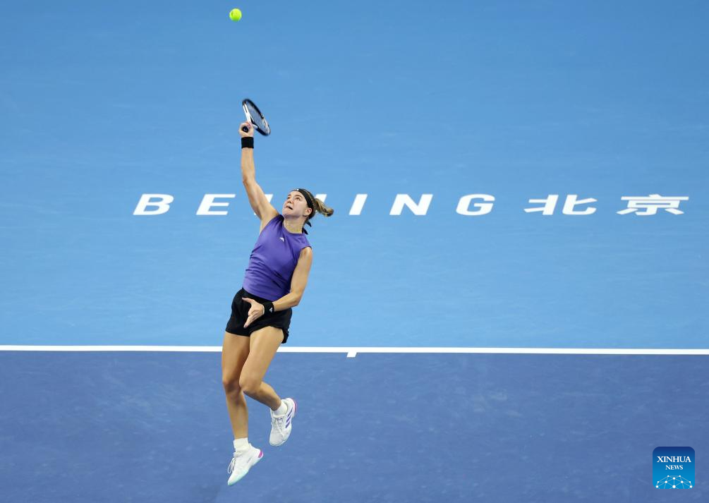 BEIJING, 6 octubre, 2024 (Xinhua) -- Karolina Muchova, de República Checa, devuelve la pelota durante el partido final de individuales femeninos ante Coco Gauff, de Estados Unidos, en el torneo de tenis Abierto de China 2024, en Beijing, China, el 6 de octubre de 2024. (Xinhua/Zhang Chenlin)