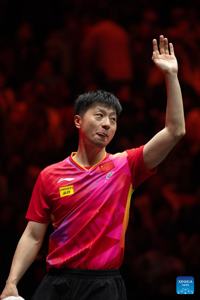 BEIJING, 6 octubre, 2024 (Xinhua) -- Ma Long, de China, saluda a los espectadores al término del partido final de individuales masculinos, ante Lin Shidong, de China, en el China Smash del World Table Tennis (WTT) 2024, en Beijing, China, el 6 de octubre de 2024. (Xinhua/Xiao Yijiu)