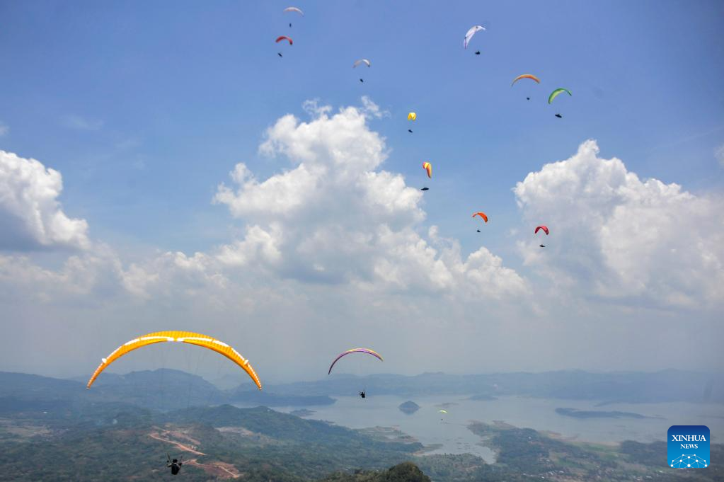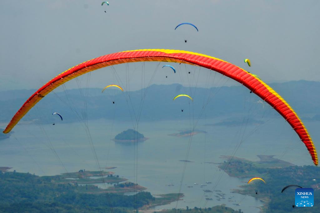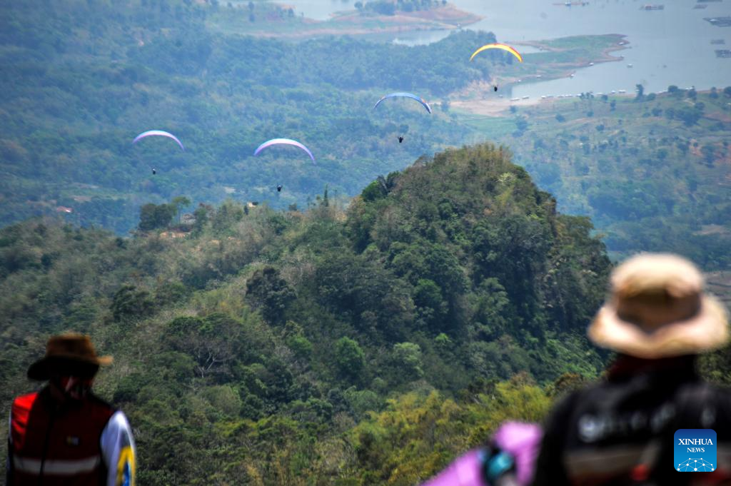 JAVA OCCIDENTAL, 6 octubre, 2024 (Xinhua) -- Participantes compiten durante la categoría de cross country en el Campeonato de Parapente de Java Occidental 2024, en Batu Dua, en la regencia de Sumedang, Java Occidental, Indonesia, el 6 de octubre de 2024. (Xinhua/Septianjar Muharam)