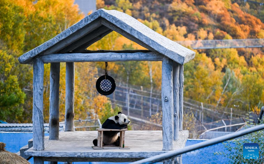 ULANQAB, 7 octubre, 2024 (Xinhua) -- Imagen del 6 de octubre de 2024 de un panda gigante en un zoológico, en el distrito de Zhuozi de Ulanqab, en la región autónoma de Mongolia Interior, en el norte de China. (Xinhua/Lian Zhen)