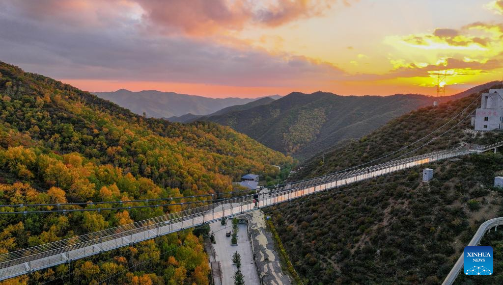 ULANQAB, 7 octubre, 2024 (Xinhua) -- Imagen del 6 de octubre de 2024 de turistas caminando por un puente de cristal en un punto escénico, en el distrito de Zhuozi de Ulanqab, en la región autónoma de Mongolia Interior, en el norte de China. (Xinhua/Lian Zhen)