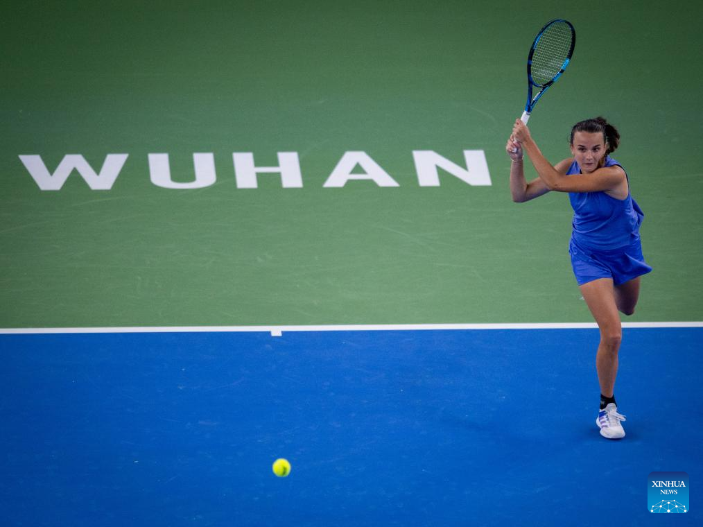 WUHAN, 7 octubre, 2024 (Xinhua) -- Clara Burel, de Francia, devuelve la pelota durante el partido de octavos de final de individuales femeninos entre Yuan Yue, de China, en el torneo de tenis Abierto de Wuhan 2024, en Wuhan, capital de la provincia de Hubei, en el centro de China, el 7 de octubre de 2024. (Xinhua/Hu Jingwen)
