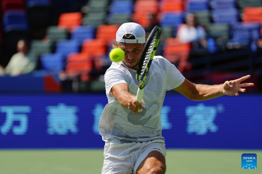 SHANGHAI, 8 octubre, 2024 (Xinhua) -- Alexandre Müller devuelve la pelota durante el partido de octavos de final de individuales masculinos entre Stefanos Tsitsipas, de Grecia, y Alexandre Müller, de Francia, en el torneo de tenis Masters de Shanghai en el ATP World Tour, en Shanghai, en el este de China, el 8 de octubre de 2024. (Xinhua/Xu Yanan)
