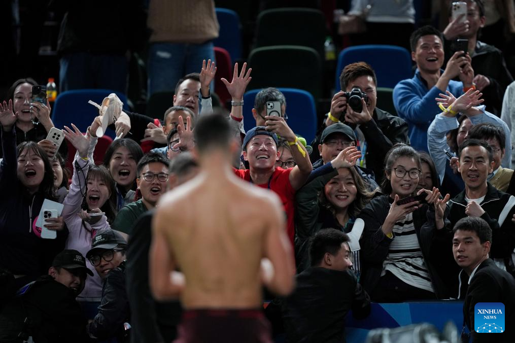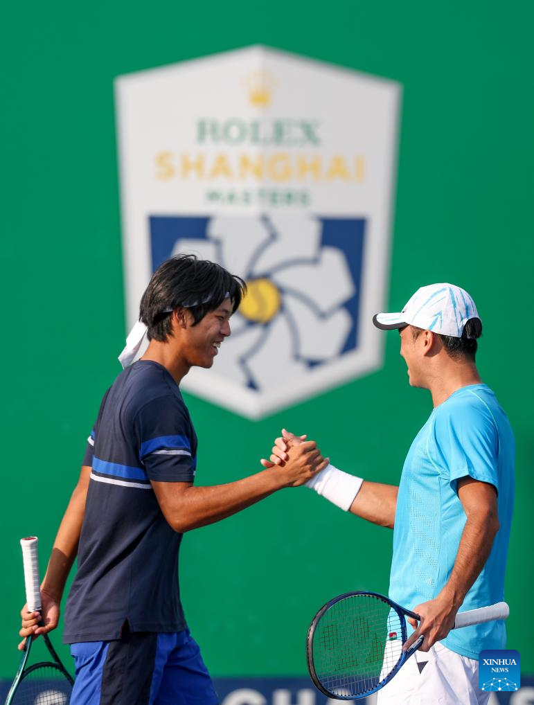 SHANGHAI, 8 octubre, 2024 (Xinhua) -- Wang Aoran y Zhou Yi (d) reaccionan al término del partido de octavos de final de dobles masculinos entre Zhou Yi/Wang Aoran de China, y Sadio Doumbia/Fabien Reboul de Francia, en el torneo de tenis Masters de Shanghai en el ATP World Tour, en Shanghai, en el este de China, el 8 de octubre de 2024. (Xinhua/Bai Xuefei)