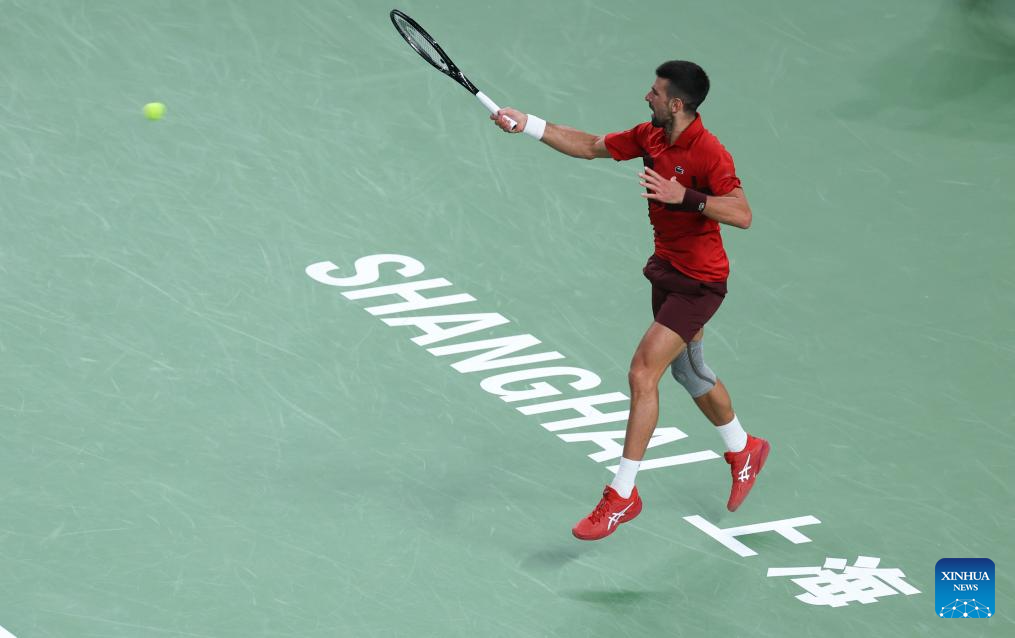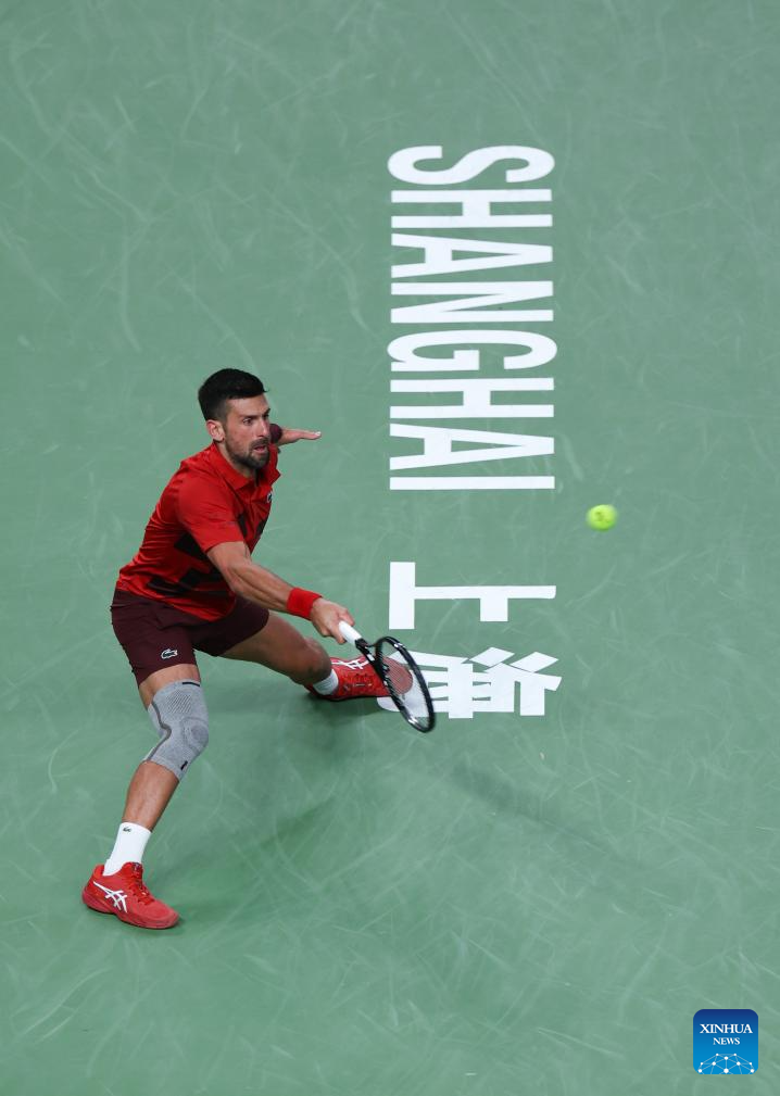 SHANGHAI, 8 octubre, 2024 (Xinhua) -- Novak Djokovic devuelve la pelota durante el partido de octavos de final de individuales masculinos entre Novak Djokovic, de Serbia, y Flavio Cobolli, de Italia, en el torneo de tenis Masters de Shanghai en el ATP World Tour, en Shanghai, en el este de China, el 8 de octubre de 2024. (Xinhua/Xu Yanan)