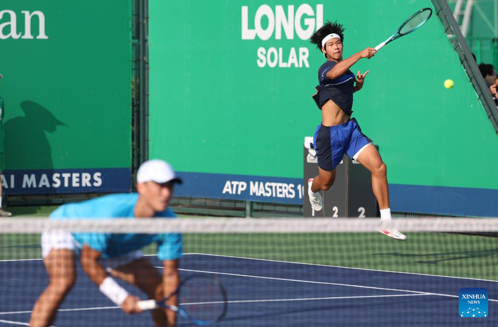 SHANGHAI, 8 octubre, 2024 (Xinhua) -- Wang Aoran y Zhou Yi (d) compiten durante el partido de octavos de final de dobles masculinos entre Zhou Yi/Wang Aoran de China, y Sadio Doumbia/Fabien Reboul de Francia, en el torneo de tenis Masters de Shanghai en el ATP World Tour, en Shanghai, en el este de China, el 8 de octubre de 2024. (Xinhua/Bai Xuefei)
