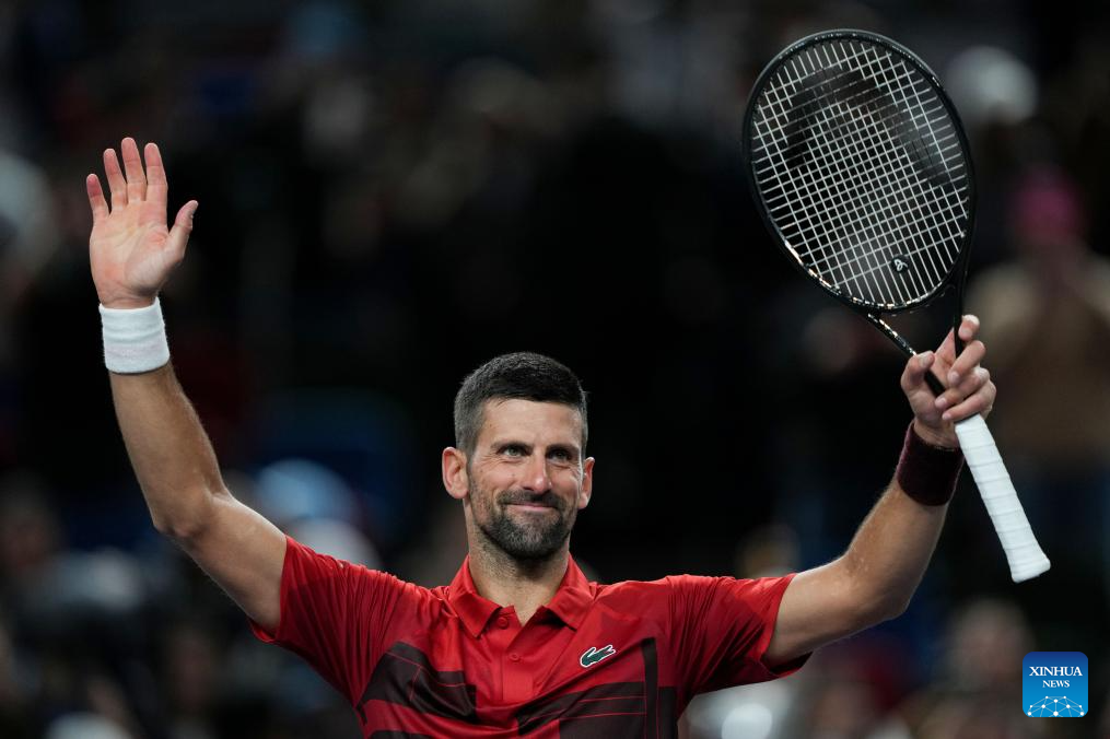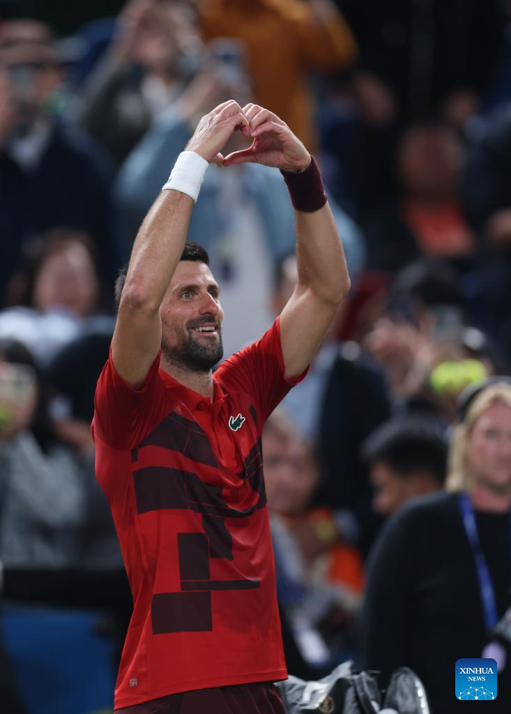 SHANGHAI, 8 octubre, 2024 (Xinhua) -- Novak Djokovic saluda a los espectadores al término del partido de octavos de final de individuales masculinos entre Novak Djokovic, de Serbia, y Flavio Cobolli, de Italia, en el torneo de tenis Masters de Shanghai en el ATP World Tour, en Shanghai, en el este de China, el 8 de octubre de 2024. (Xinhua/Xu Yanan)