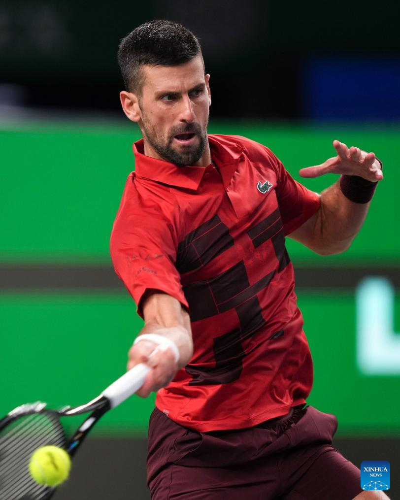 SHANGHAI, 8 octubre, 2024 (Xinhua) -- Novak Djokovic devuelve la pelota durante el partido de octavos de final de individuales masculinos entre Novak Djokovic, de Serbia, y Flavio Cobolli, de Italia, en el torneo de tenis Masters de Shanghai en el ATP World Tour, en Shanghai, en el este de China, el 8 de octubre de 2024. (Xinhua/Bai Xuefei)
