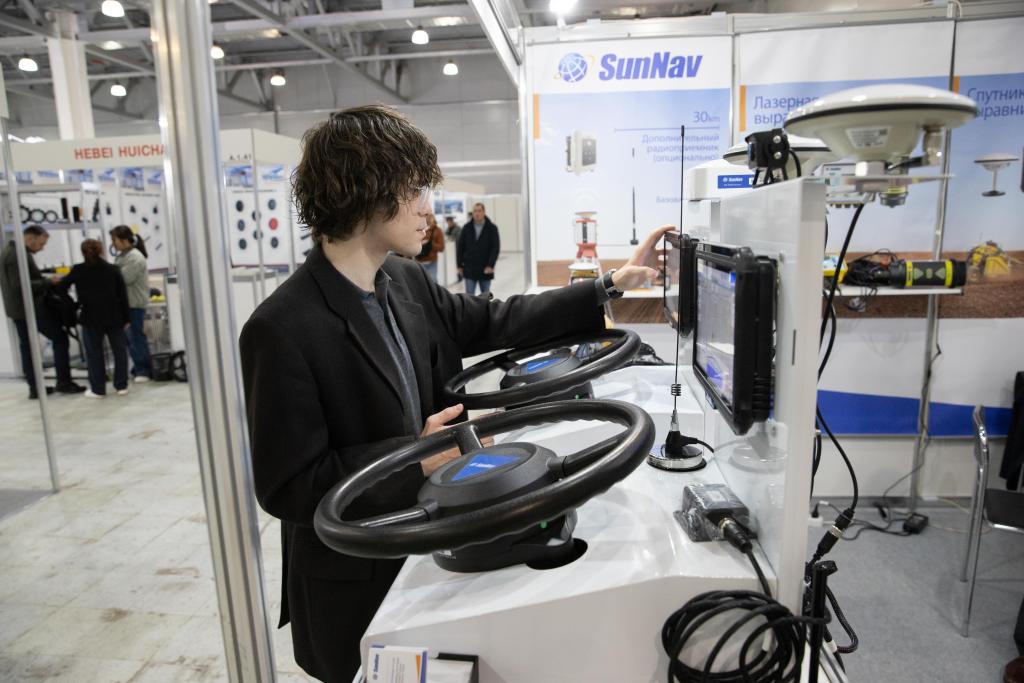 MOSCU, 9 octubre, 2024 (Xinhua) -- Un visitante prueba un equipo de navegación para maquinaria agrícola fabricado por una empresa china en la exposición "Agrosalon-2024", en Moscú, Rusia, el 9 de octubre de 2024. La exposición, que presenta una amplia gama de productos y soluciones innovadoras de maquinaria agrícola de todo el mundo, comenzó el 8 de octubre y durará hasta el 11 de octubre. (Xinhua/Bai Xueqi)