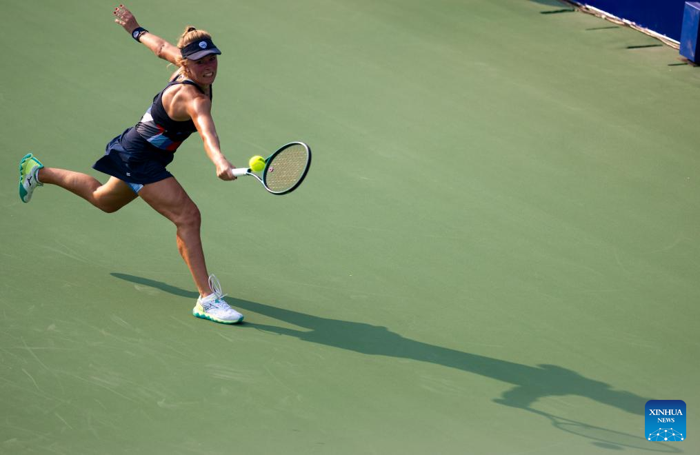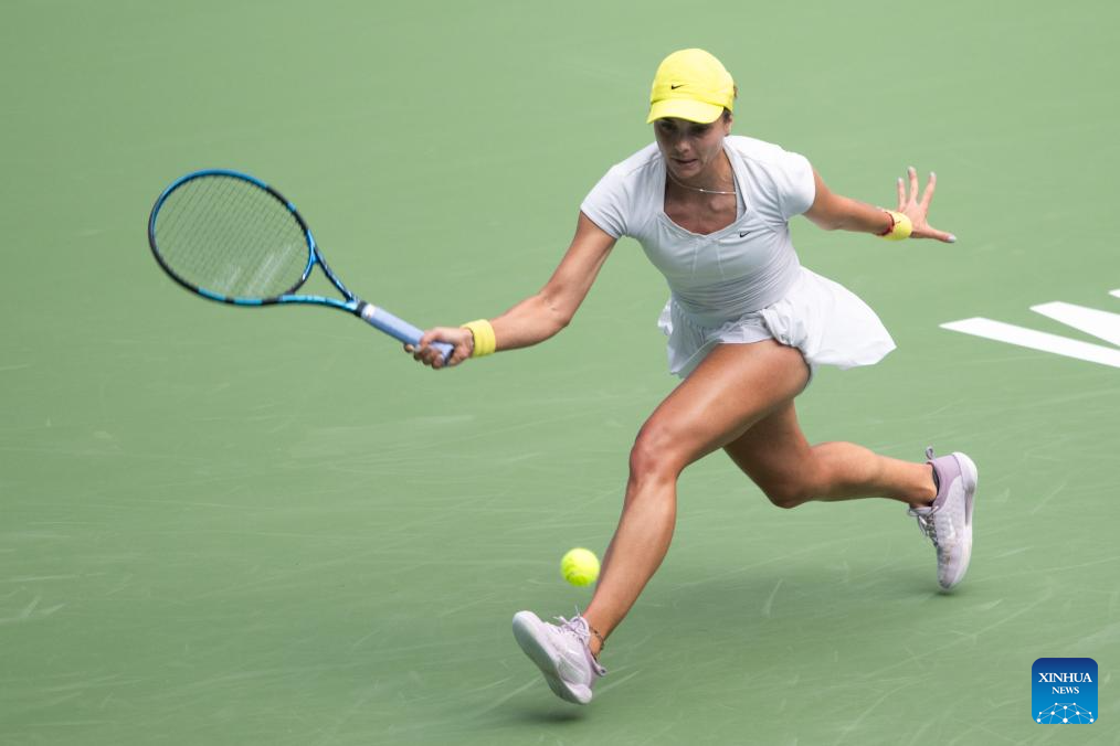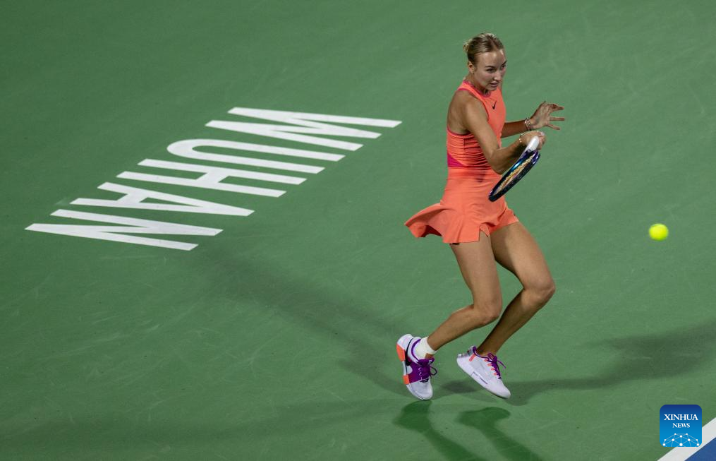 WUHAN, 9 octubre, 2024 (Xinhua) -- Anastasia Potapova devuelve la pelota durante el partido de la ronda de 16avos de final entre Anastasia Potapova, de Rusia, y Jessica Pegula, de Estados Unidos, en el torneo de tenis Abierto de Wuhan 2024, en Wuhan, capital de la provincia de Hubei, en el centro de China, el 9 de octubre de 2024. (Xinhua/Hu Jingwen)