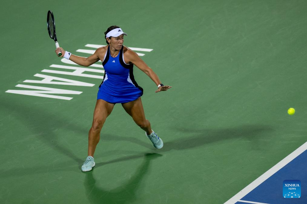 WUHAN, 9 octubre, 2024 (Xinhua) -- Jessica Pegula devuelve la pelota durante el partido de la ronda de 16avos de final entre Anastasia Potapova, de Rusia, y Jessica Pegula, de Estados Unidos, en el torneo de tenis Abierto de Wuhan 2024, en Wuhan, capital de la provincia de Hubei, en el centro de China, el 9 de octubre de 2024. (Xinhua/Hu Jingwen)