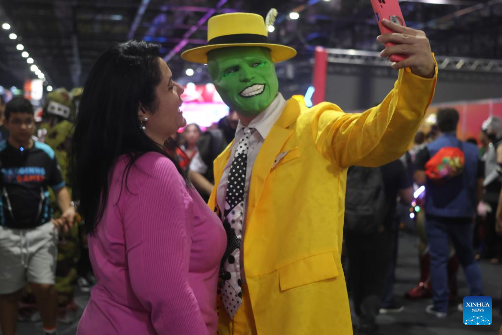 SAO PAULO, 11 octubre, 2024 (Xinhua) -- Imagen del 10 de octubre de 2024 de "cosplayers" asistiendo al Brasil Game Show, en Sao Paulo, Brasil. (Xinhua/Rahel Patrasso)
