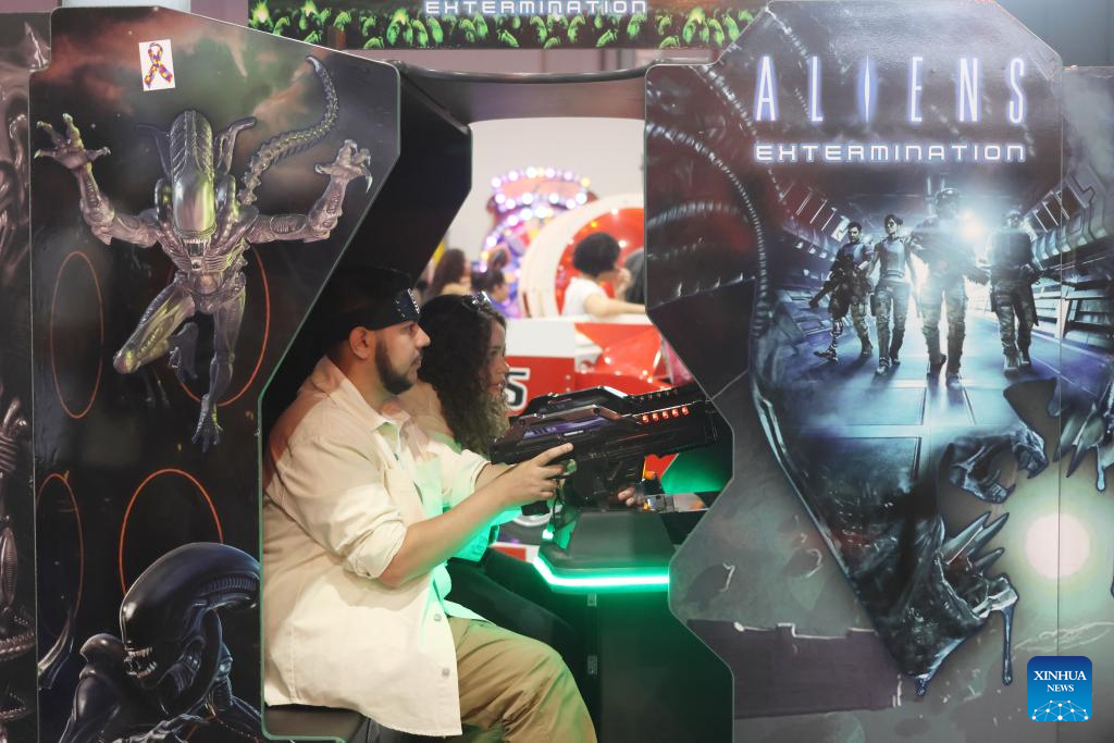 SAO PAULO, 11 octubre, 2024 (Xinhua) -- Imagen del 10 de octubre de 2024 de personas jugando durante el Brasil Game Show, en Sao Paulo, Brasil. (Xinhua/Rahel Patrasso)