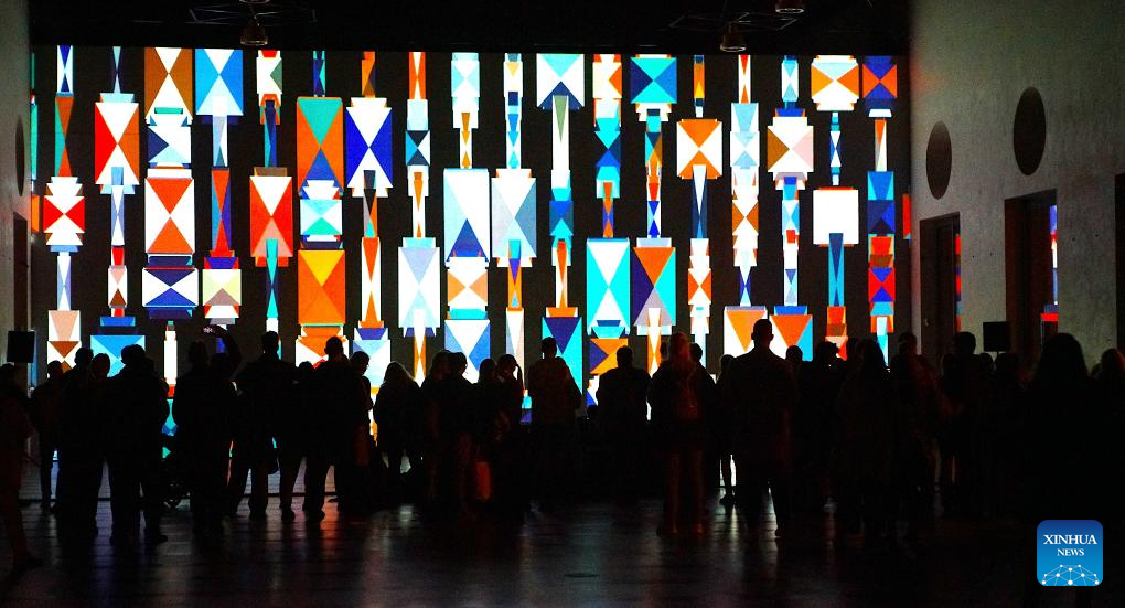 PRAGA, 11 octubre, 2024 (Xinhua) -- Imagen del 10 de octubre de 2024 de visitantes observando una proyección de mapeo de video durante el Festival Signal, en Praga, República Checa. Un festival de cuatro días de duración de cultura digital y creativa comenzó el jueves, mostrando más de 20 instalaciones de luz de artistas mundiales. (Xinhua/Dana Kesnerova)