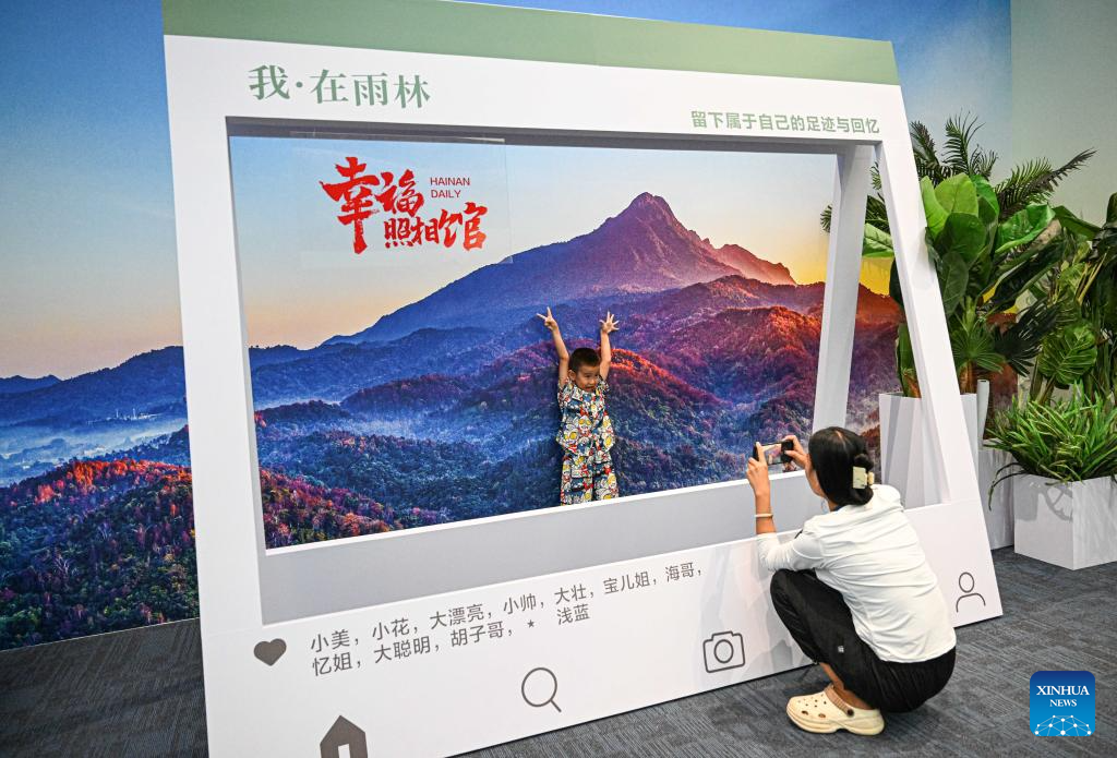 HAIKOU, 13 octubre, 2024 (Xinhua) -- Una visitante posa para una fotografía durante la exposición "Protegiendo el Hogar de la Selva Tropical", en Haikou, en la provincia de Hainan, en el sur de China, el 13 de octubre de 2024. La exposición "Protegiendo el Hogar de la Selva Tropical" fue realizada por la oficina de gestión del Parque Nacional de la Selva Tropical de Hainan en Haikou. Presentando especímenes de animales, fotografías y videos, la exposición muestra la belleza de la selva tropical y presenta el proceso de construcción del Parque Nacional de la Selva Tropical de Hainan. (Xinhua/Pu Xiaoxu)