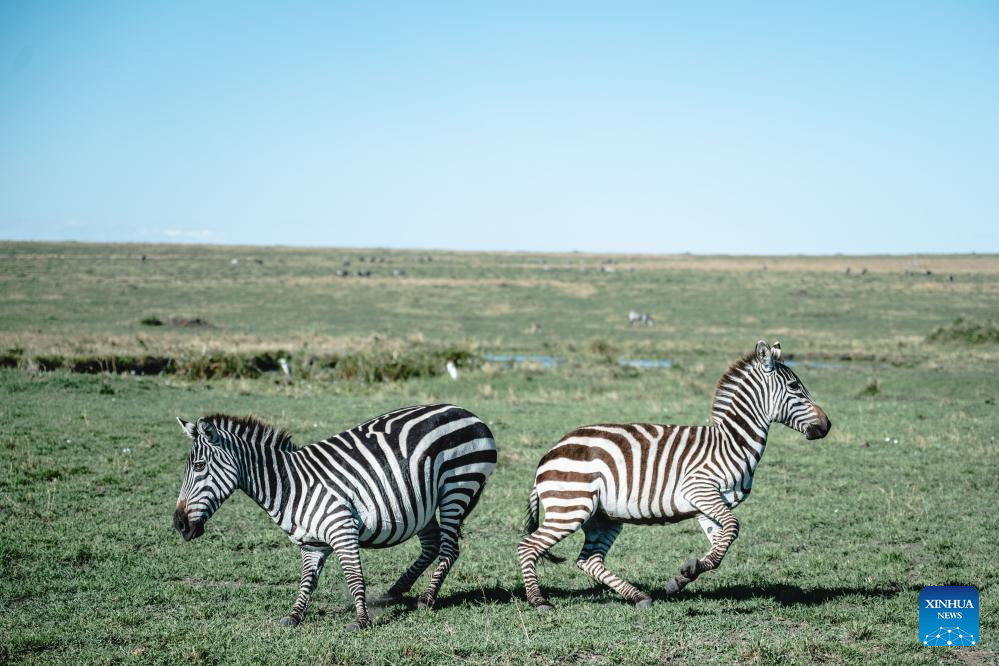 NAIROBI, 14 octubre, 2024 (Xinhua) -- Imagen del 12 de octubre de 2024 de cebras vistas en la Reserva Nacional Masai Mara de Kenia. El condado de Narok, en el suroeste de Kenia, es hogar de la mundialmente famosa Reserva Nacional Masai Mara en donde los turistas acuden durante la temporada alta de turismo del país, de junio a octubre, para observar la migración de ñus. (Xinhua/Wang Guansen)