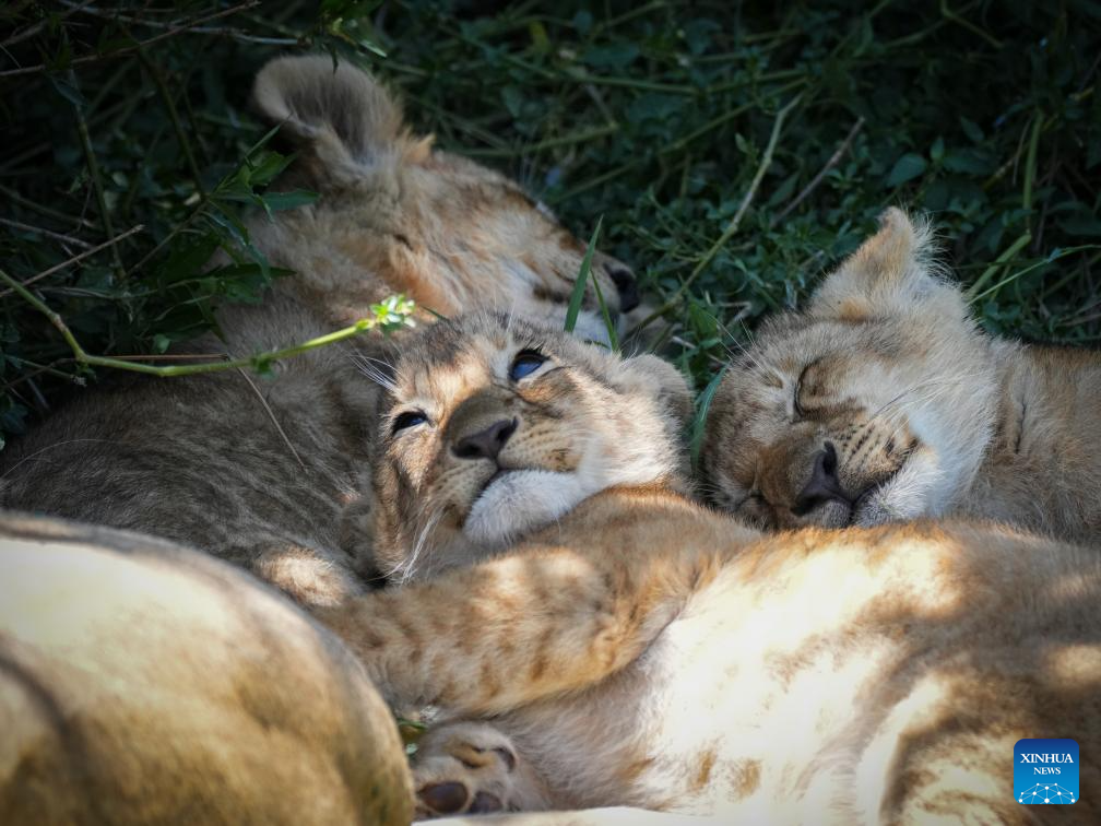 NAIROBI, 14 octubre, 2024 (Xinhua) -- Imagen del 12 de octubre de 2024 de leones descansando en el pasto en la Reserva Nacional Masai Mara de Kenia. El condado de Narok, en el suroeste de Kenia, es hogar de la mundialmente famosa Reserva Nacional Masai Mara en donde los turistas acuden durante la temporada alta de turismo del país, de junio a octubre, para observar la migración de ñus. (Xinhua/Li Yahui)