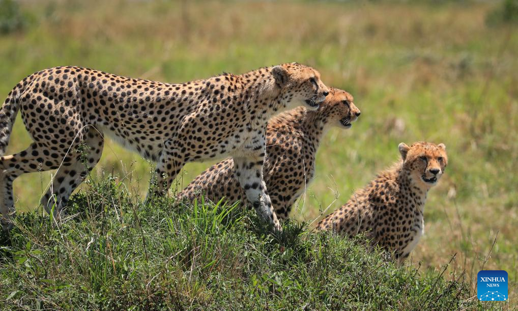 NAIROBI, 14 octubre, 2024 (Xinhua) -- Imagen del 12 de octubre de 2024 de guepardos vistos en la Reserva Nacional Masai Mara de Kenia. El condado de Narok, en el suroeste de Kenia, es hogar de la mundialmente famosa Reserva Nacional Masai Mara en donde los turistas acuden durante la temporada alta de turismo del país, de junio a octubre, para observar la migración de ñus. (Xinhua/Han Xu)