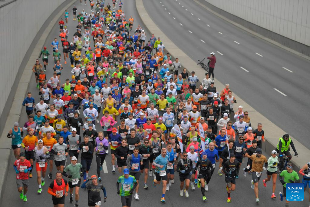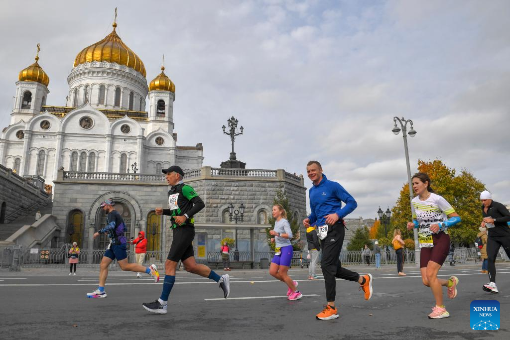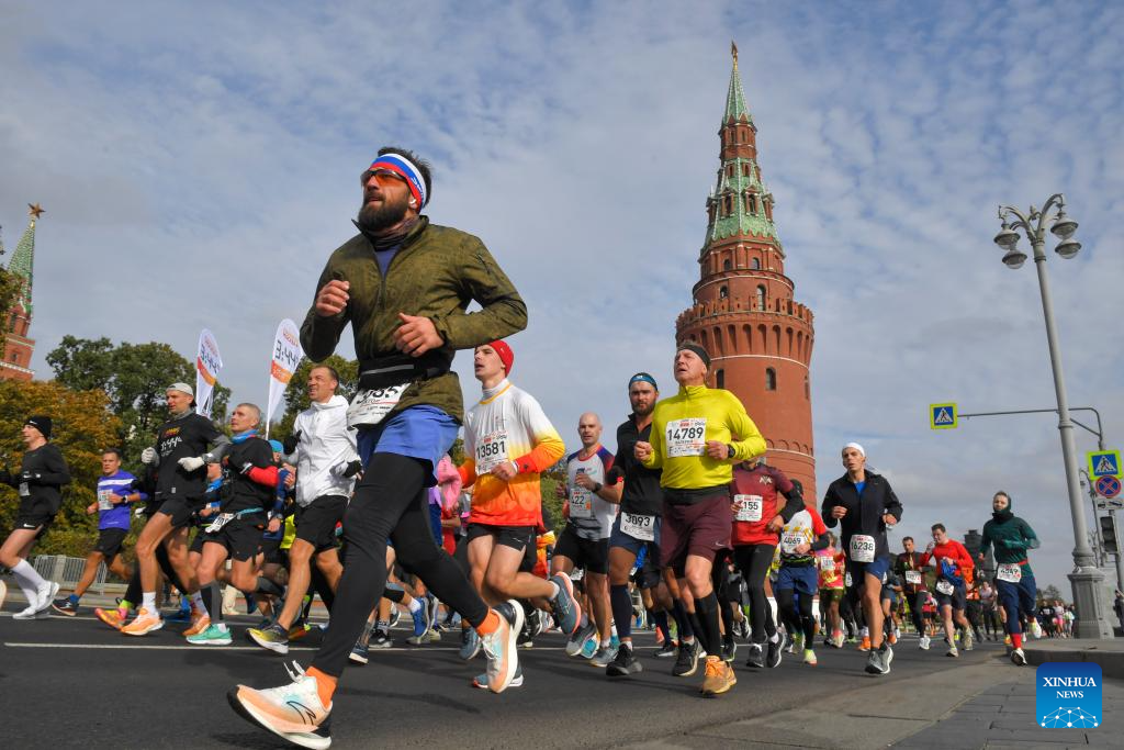 MOSCU, 14 octubre, 2024 (Xinhua) -- Imagen del 13 de octubre de 2024 de competidores participando en el Maratón de Moscú, en Moscú, Rusia. (Xinhua/Alexander Zemlianichenko Jr)