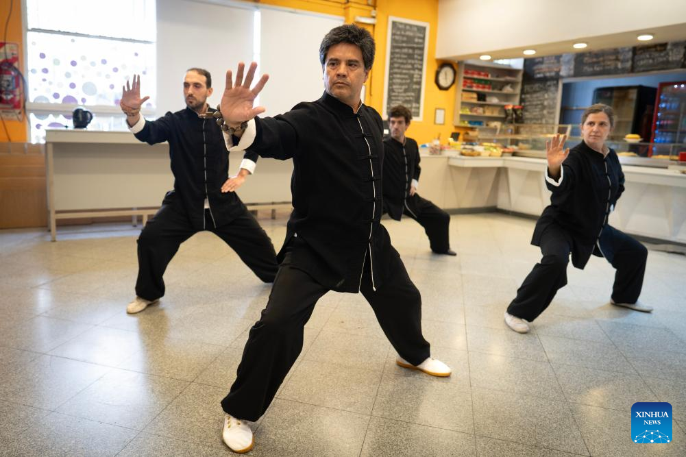 Imagen del 16 de octubre de 2024 de alumnos de la escuela de artes marciales Shaolin de Argentina realizando una exhibición de Tai Chi durante el acto de celebración del 20° aniversario del inicio del programa oficial de enseñanza del idioma chino en Argentina, en el Centro Universitario de Idiomas (CUI) de la Universidad de Buenos Aires (UBA), en la ciudad de Buenos Aires, capital de Argentina. El programa oficial de enseñanza del idioma chino en Argentina celebró el miércoles su 20° aniversario con un evento en el CUI de la UBA, donde se resaltó su rol como un puente cultural que, a lo largo de dos décadas, ha fortalecido los lazos entre Argentina y China. (Xinhua/Martín Zabala)