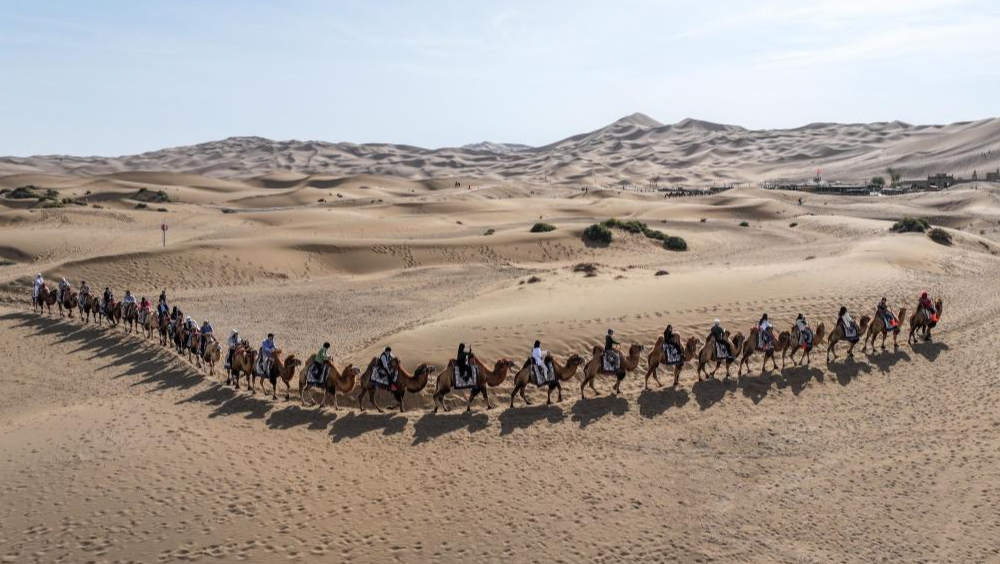 SHIJIAZHUANG, 16 octubre, 2024 (Xinhua) -- Vista aérea tomada con un dron el 16 de octubre de 2024 de trabajadores transportando sal cosechada en el campo de sal de Nanpu, en el distrito de Caofeidian de Tangshan, en la provincia de Hebei, en el norte de China. (Xinhua/Yang Shiyao)