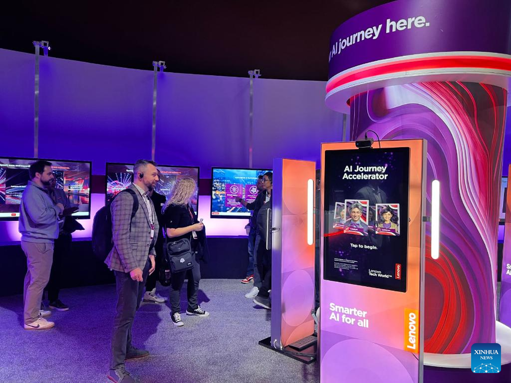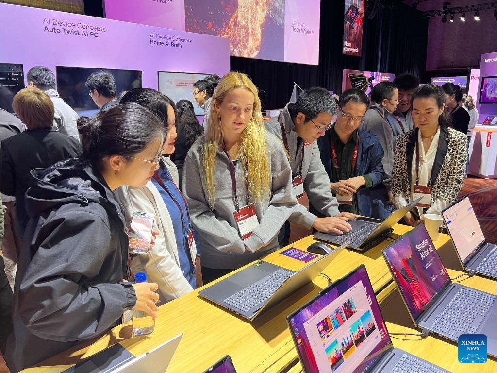 SEATTLE, 16 octubre, 2024 (Xinhua) -- Imagen del 15 de octubre de 2024 de personas visitando la cumbre anual de tecnología de Lenovo titulada "Lenovo Tech World 24", en Seattle, Estados Unidos. Lenovo lanzó el martes su cumbre anual de tecnología en Seattle, estado estadounidense de Washington, presentando las últimas innovaciones y soluciones en inteligencia artificial (IA). (Xinhua/Tan Jingjing)