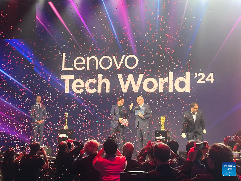 SEATTLE, 16 octubre, 2024 (Xinhua) -- Imagen del 15 de octubre de 2024 de una vista de la cumbre anual de tecnología de Lenovo titulada "Lenovo Tech World 24", en Seattle, Estados Unidos. La FIFA, el organismo rector del fútbol mundial, anunció que Lenovo ha sido nombrado Socio Tecnológico Oficial de la FIFA en la cumbre. Lenovo lanzó el martes su cumbre anual de tecnología en Seattle, estado estadounidense de Washington, presentando las últimas innovaciones y soluciones en inteligencia artificial (IA). (Xinhua/Tan Jingjing)