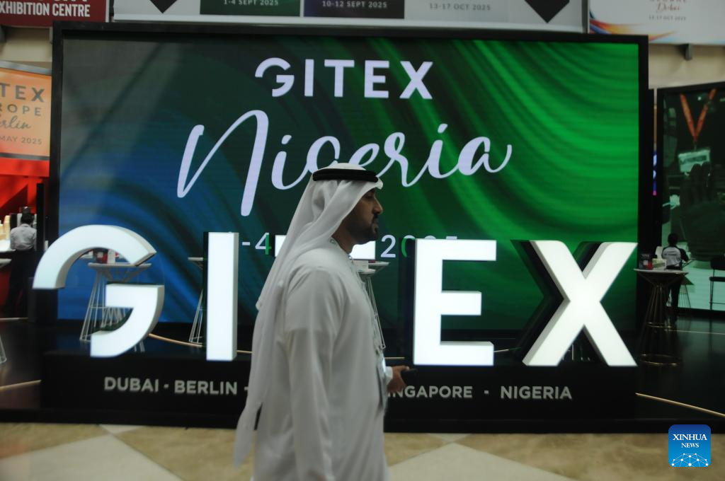 DUBAI, 17 octubre, 2024 (Xinhua) -- Personas observan una exhibición en la Exposición de Tecnologías de la Información del Golfo (GITEX, por sus siglas en inglés), en Dubai, Emiratos Arabes Unidos, el 17 de octubre de 2024. (Xinhua/Duan Minfu)