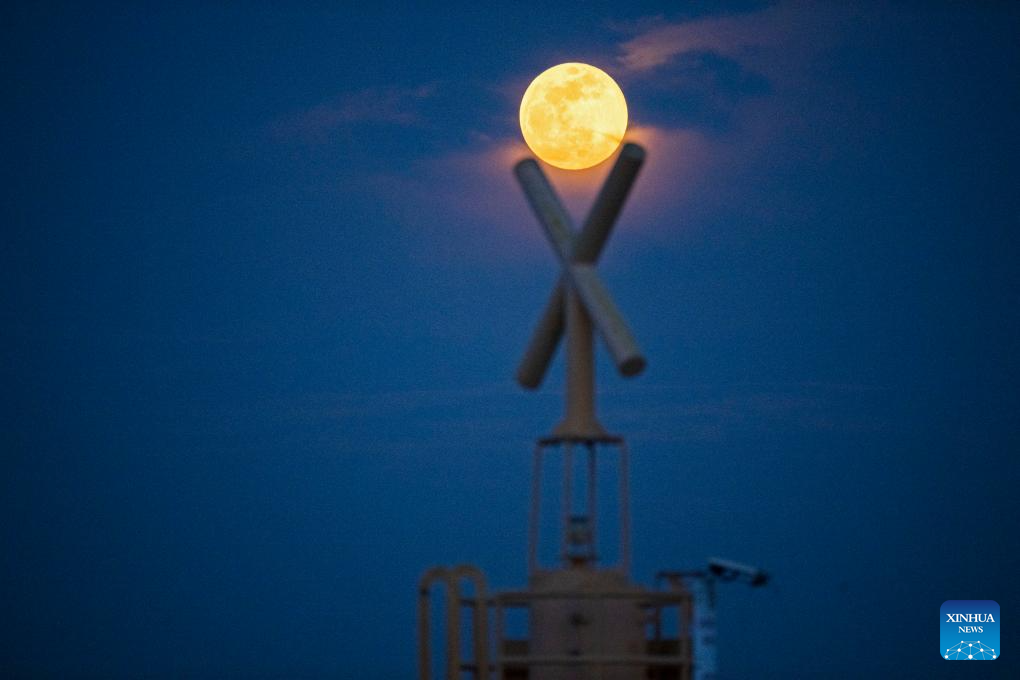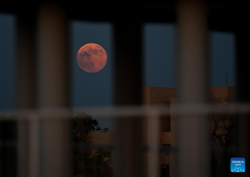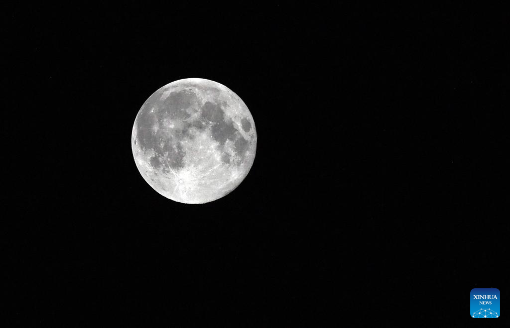 CIUDAD DE KUWAIT, 17 octubre, 2024 (Xinhua) -- La luna llena es vista en el cielo sobre la Ciudad de Kuwait, Kuwait, el 17 de octubre de 2024. (Xinhua/Asad)