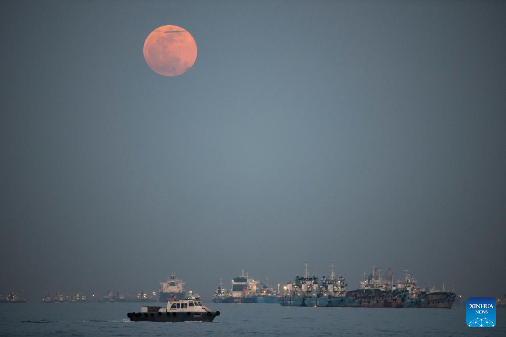 SINGAPUR, 17 octubre, 2024 (Xinhua) -- La luna llena es vista sobre Singapur, el 17 de octubre de 2024. (Xinhua/Then Chih Wey)