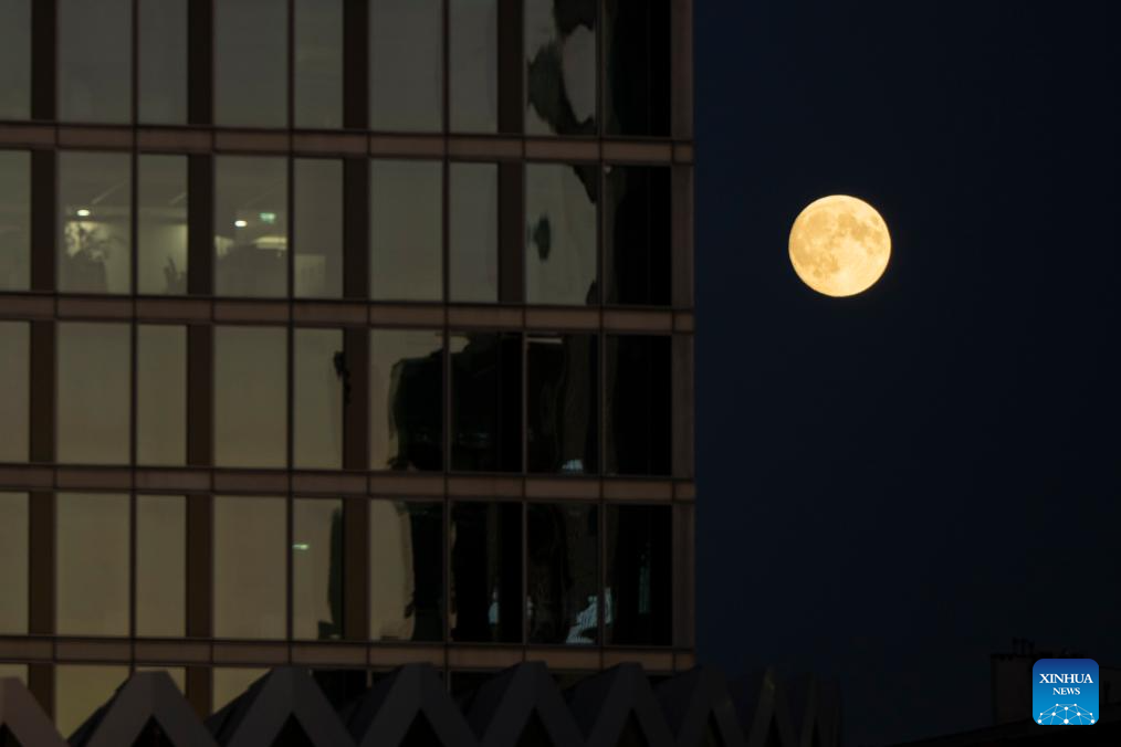 SIDNEY, 17 octubre, 2024 (Xinhua) -- La superluna es vista en Sídney, Australia, el 17 de octubre de 2024. (Xinhua/Ma Ping)