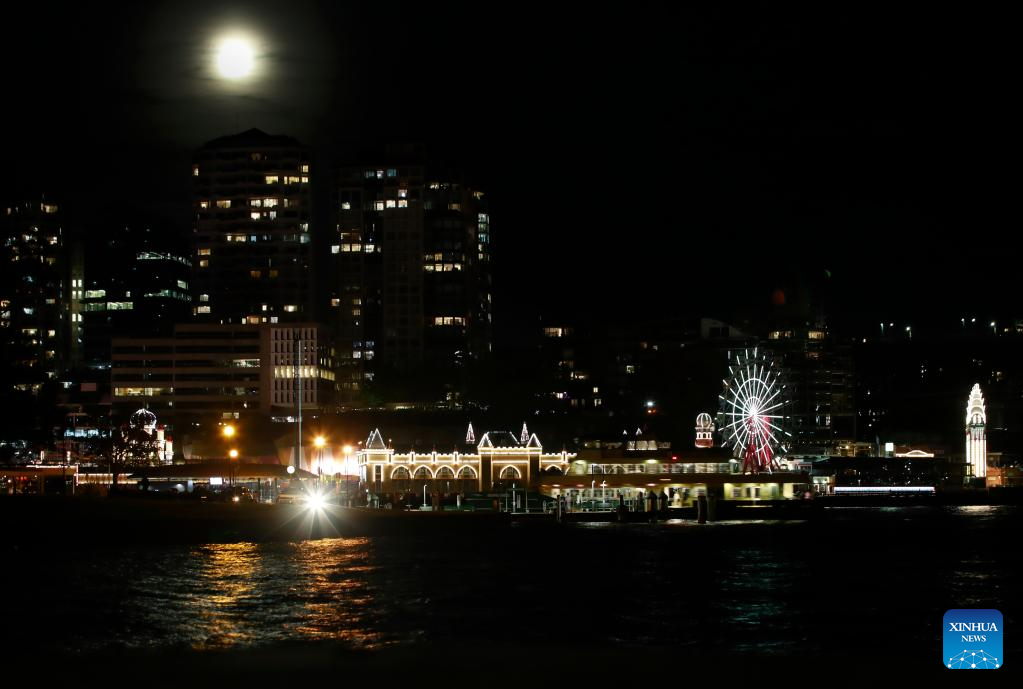 SIDNEY, 17 octubre, 2024 (Xinhua) -- La superluna es vista sobre el Luna Park, en Sídney, Australia, el 17 de octubre de 2024. (Xinhua/Ma Ping)