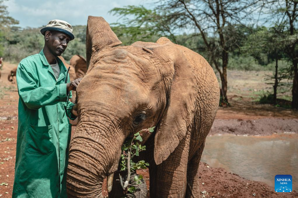 NAIROBI, 17octubre, 2024 (Xinhua) -- Imagen del 16 de octubre de 2024 de un cuidador interactuando con un elefante en el Orfanato de Elefantes, en Nairobi, Kenia. El orfanato, ubicado en las afueras de Nairobi, trata y rescata a los elefantes "huérfanos" en varias reservas naturales de Kenia. A través del tratamiento y entrenamiento, restaura gradualmente la capacidad de los elefantes que se vieron afectados por factores naturales y humanos para ayudarlos a recuperar su estado salvaje y sobrevivir de forma independiente. (Xinhua/Wang Guansen)
