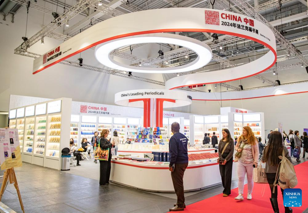 FRANKFURT, 17 octubre, 2024 (Xinhua) -- Visitantes son vistos en el área de exposición de editoriales chinas durante la 76 Feria del Libro de Frankfurt, en Frankfurt, Alemania, el 17 de octubre de 2024. La Feria del Libro de Frankfurt comenzó oficialmente el martes. Las editoriales chinas están causando un impacto significativo en la feria de este año, mostrando más de 3.500 libros, incluidos 1.500 en idiomas extranjeros. Además de los nuevos lanzamientos de libros, las editoriales chinas están celebrando numerosos estrenos y ceremonias de firma de acuerdos de derechos de autor, con hasta 1.000 libros disponibles para el comercio de derechos de autor. La feria también incluirá un evento promocional para la Feria Internacional del Libro de Beijing 2025 y una sesión sobre el comercio de derechos de autor entre China y Europa. (Xinhua/Zhang Fan)