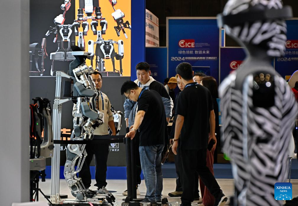 QINGDAO, 18 octubre, 2024 (Xinhua) -- Personas visitan la Exposición Internacional de Electrónica de Consumo de China 2024, en Qingdao, en la provincia de Shandong, en el este de China, el 18 de octubre de 2024. La exposición comenzó aquí el viernes. (Xinhua/Li Ziheng)