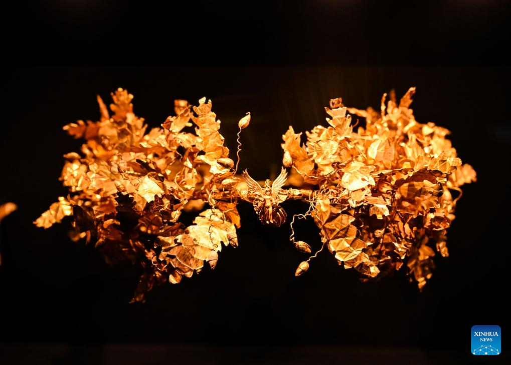 ESTAMBUL, 18 octubre, 2024 (Xinhua) -- Imagen del 17 de octubre de 2024 de una corona exhibida en el Museo Arqueológico de Estambul, en Estambul, Turquía. El Museo Arqueológico de Estambul en Turquía fue establecido en el sigo XIX y es uno de los museos más famosos del mundo. (Xinhua/Liu Lei)