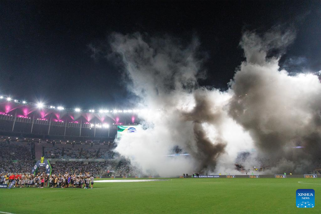 RIO DE JANEIRO, 19 octubre, 2024 (Xinhua) -- Imagen del 18 de octubre de 2024 de jugadores de Botafogo ingresando al campo previo al partido correspondiente a la jornada 30 del Campeonato Brasileño Serie A, ante Criciúma, celebrado en el Estadio Maracaná, en Río de Janeiro, Brasil. (Xinhua/Claudia Martini)