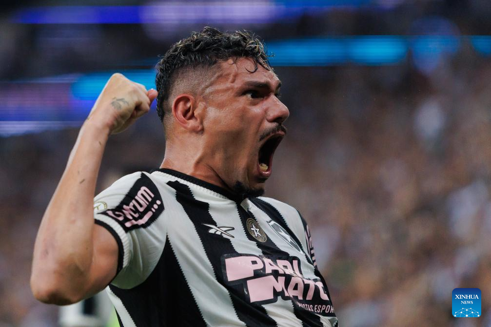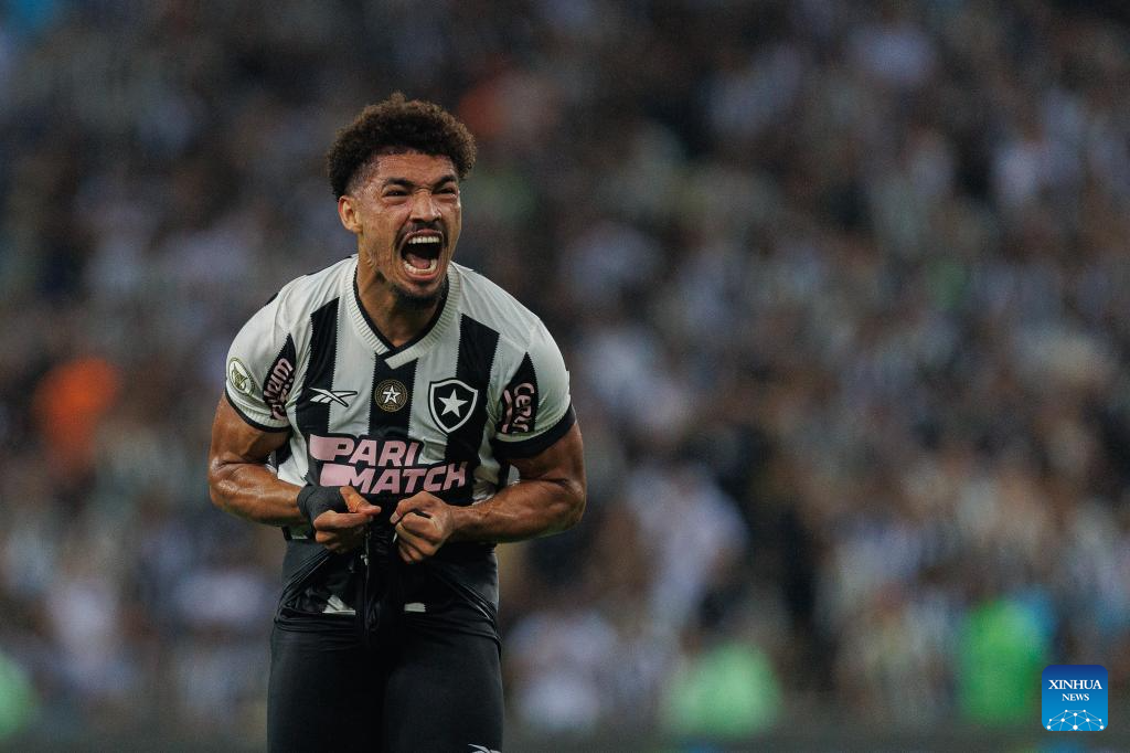 RIO DE JANEIRO, 19 octubre, 2024 (Xinhua) -- Imagen del 18 de octubre de 2024 del jugador Tiquinho Soares, de Botafogo, festejando su anotación durante el partido correspondiente a la jornada 30 del Campeonato Brasileño Serie A, ante Criciúma, celebrado en el Estadio Maracaná, en Río de Janeiro, Brasil. (Xinhua/Claudia Martini)