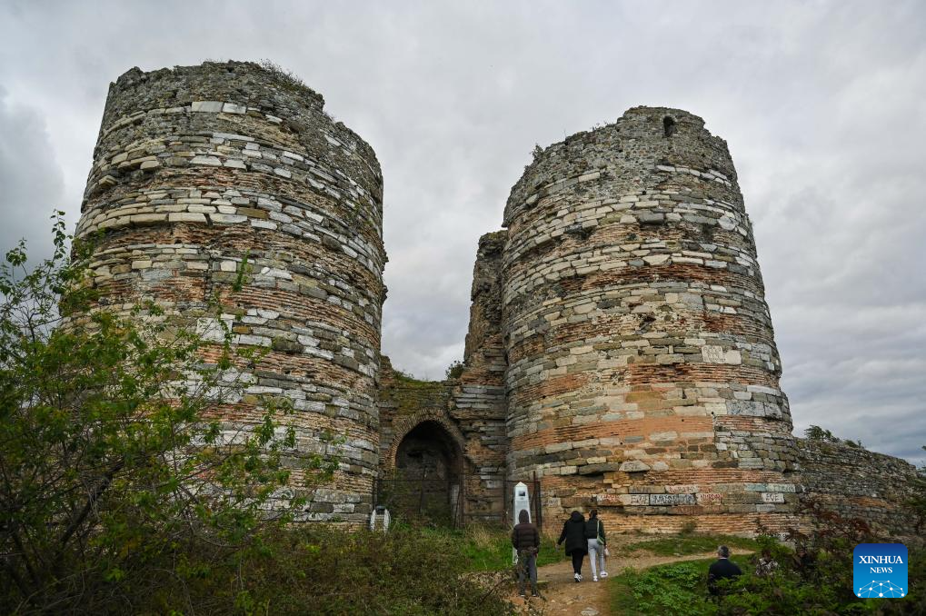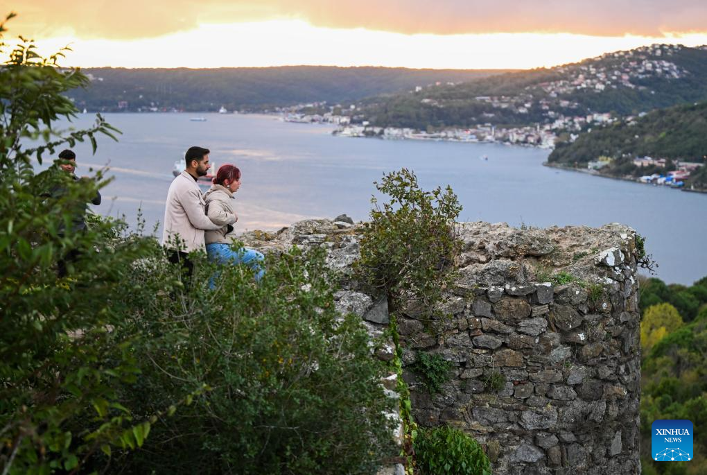 ESTAMBUL, 20 octubre, 2024 (Xinhua) -- Imagen del 19 de octubre de 2024 de turistas visitando las ruinas del Castillo de Yoros, en Estambul, Turquía. El Castillo de Yoros, ubicado en la región asiática de Estambul, fue construido durante el Imperio Romano de Oriente y utilizado como instalación militar para vigilar la entrada y salida del Estrecho del Bósforo por el lado del Mar Negro. (Xinhua/Liu Lei)