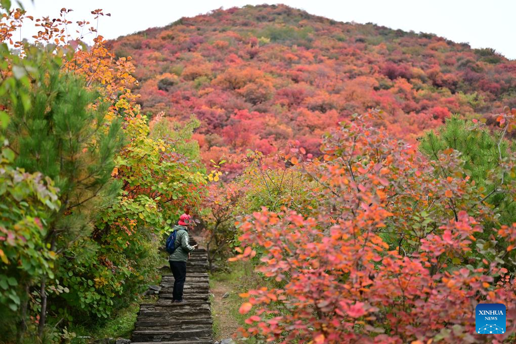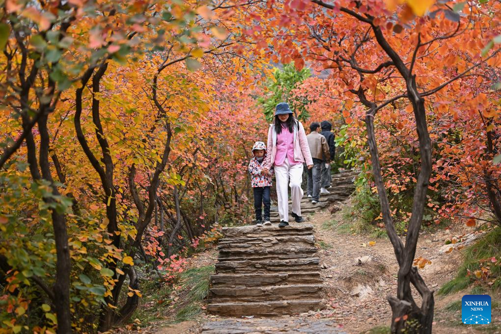 BEIJING, 20 octubre, 2024 (Xinhua) -- Personas disfrutan del paisaje de otoño en el Area Escénica de Pofengling, en el distrito de Fangshan de Beijing, el 20 de octubre de 2024. (Xinhua/Li Xin)