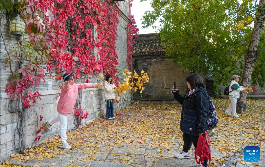 BEIJING, 20 octubre, 2024 (Xinhua) -- Personas posan para fotografías en el Poblado de Agua de Gubei, en Beijing, capital de China, el 20 de octubre de 2024. (Xinhua/Chen Yehua)