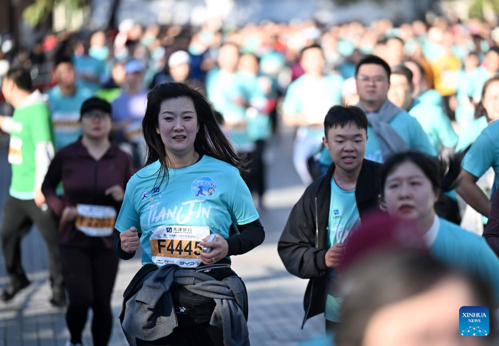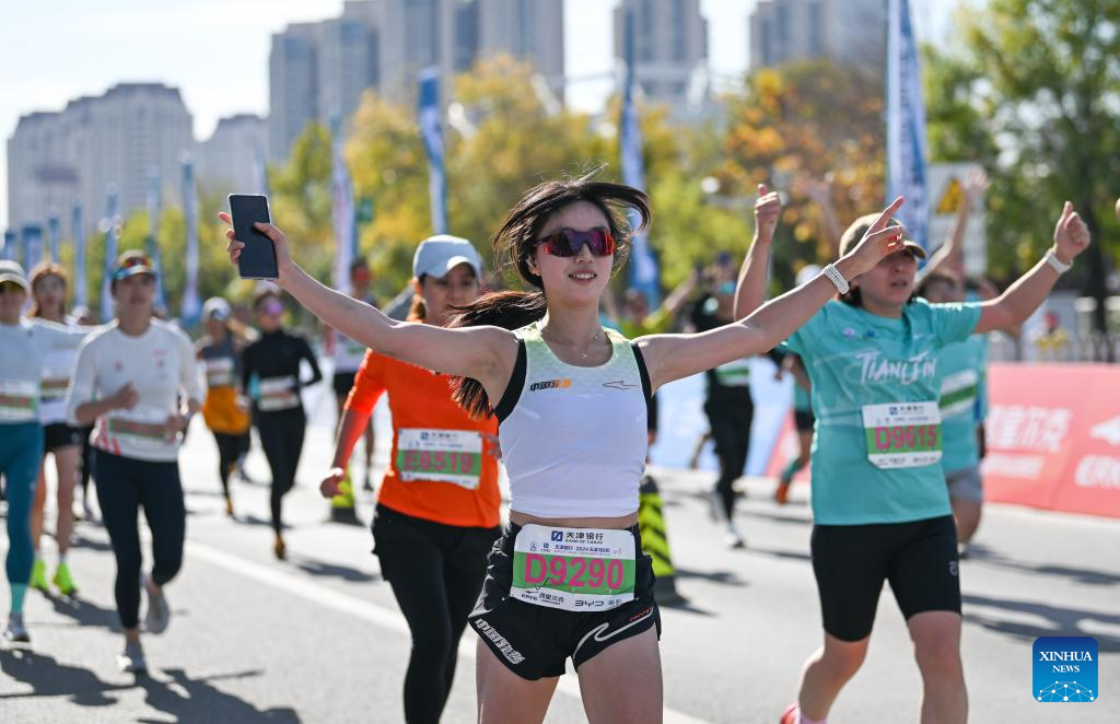 TIANJIN, 20 octubre, 2024 (Xinhua) -- Participantes corren durante el Maratón de Tianjin 2024, en Tianjin, en el norte de China, el 20 de octubre de 2024. (Xinhua/Zhao Zishuo)