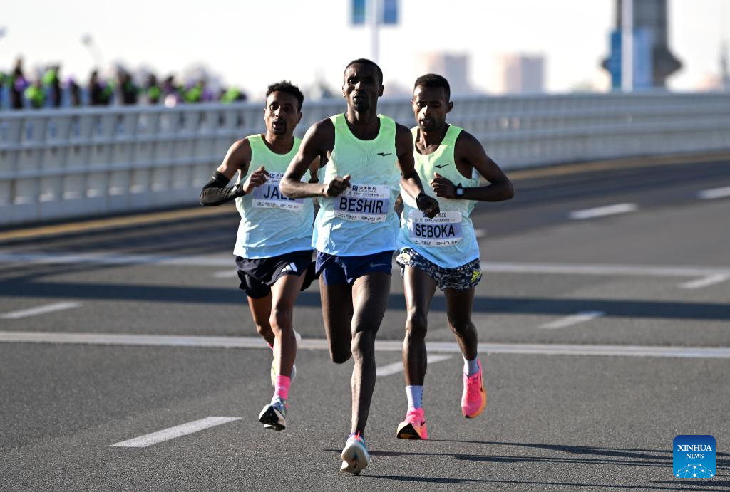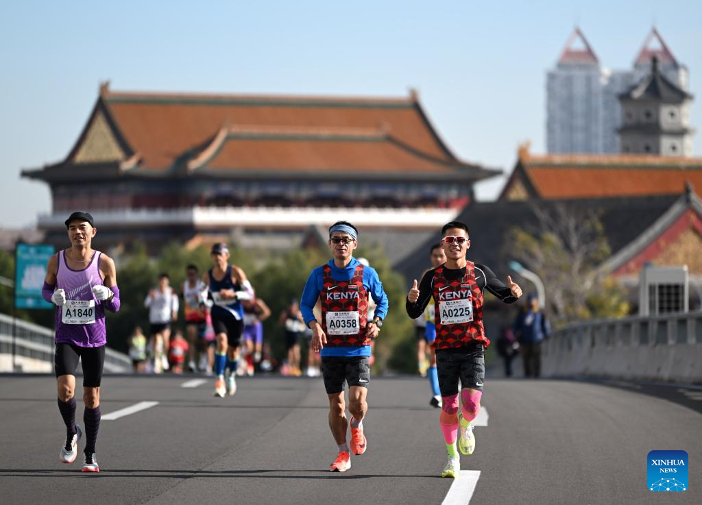 TIANJIN, 20 octubre, 2024 (Xinhua) -- Competidores corren durante el Maratón de Tianjin 2024, en Tianjin, en el norte de China, el 20 de octubre de 2024. (Xinhua/Li Ran)