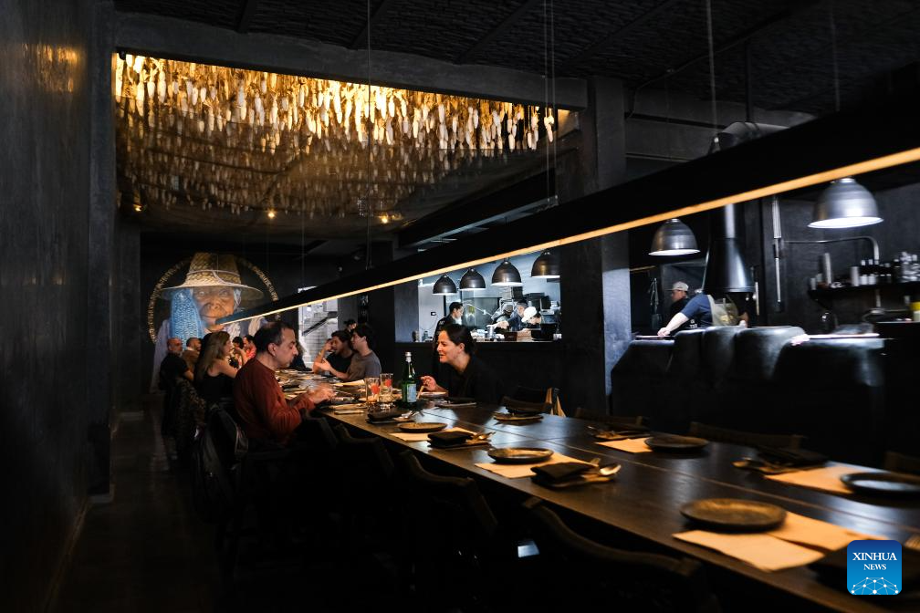 JALISCO, 21 octubre, 2024 (Xinhua) -- Imagen del 28 de septiembre de 2024 de personas reaccionando en el restaurante de comida mexicana Xokol, en Guadalajara, estado de Jalisco, México. El dulce aroma del maíz y del chile asado en comales de barro, fogones, y una mesa larga, en la que los comensales comparten deliciosos alimentos inspirados en la cocina ancestral mexicana, forman parte de Xokol, un espacio donde el acto de comer se convierte en un ritual. (Xinhua/Diana Márquez)